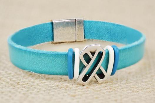 Leather Ribbon Awareness Bracelet