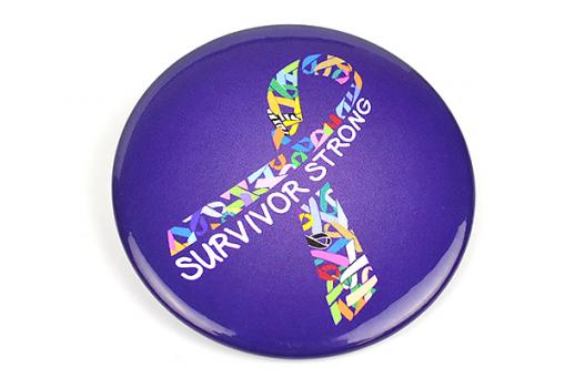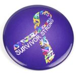 Celebrate remission or cancerversaries or use as an affordable giveaway for events while bringing awareness to all cancers. Our exclusively designed Ribbon of Hope button features an array of cancer awareness ribbon colors within a larger ribbon design. The inspirational words SURVIVOR STRONG finishes the look. Show your support for everyone who has walked the journey!
