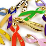 All Cancers – Lavender, Anal Cancer – Purple/Green, Appendix Cancer – Amber, Bladder Cancer – Marigold/Blue/Purple, Brain Cancer – Grey, Breast Cancer – Pink, Cervical Cancer – Teal/White, Childhood Cancer – Gold, Colon Cancer – Dark Blue, Esophageal Cancer – Periwinkle, Gallbladder/Bile Duct Cancer – Kelly, Head & Neck Cancers – Burgundy/Ivory, Hodgkin’s Lymphoma – Violet, Honor Caregivers – Plum, Kidney Cancer – Orange, Leiomyosarcoma – Purple, Leukemia – Orange, Liver Cancer – Emerald Green, Lung Cancer – White, Lymphoma – Lime, Melanoma – Black, Metastatic Breast Cancer – Green/Teal/Pink, Multiple Myeloma – Burgundy, Neuroendocrine & Rare Cancers – Zebra Stripe, Ovarian Cancer – Teal, Pancreatic Cancer – Purple, Prostate Cancer – Light Blue, Sarcoma/Bone Cancer – Yellow, Stomach Cancer – Periwinkle, Testicular Cancer – Orchid, Thyroid Cancer – Teal/Pink/Blue, Uterine Cancer – Peach