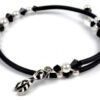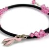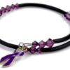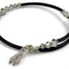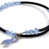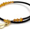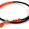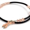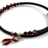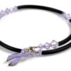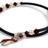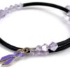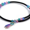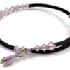 This contemporary and classy Cancer Awareness Wrap Bracelet is handmade of memory wire wrapped in black tubing which creates a beautiful backdrop for the crystals. A Ribbon Awareness Charm in the cancer color of your choice dangles from one end of the bracelet.