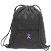 Dark grey Cancer Ribbon Sweatshirt Cinch Bag with a pink breast cancer awareness ribbon on the front of the bag Cancer Ribbon Sweatshirt Cinch Bag Anal Cancer – Purple/Green 20410-PGR $12.95