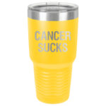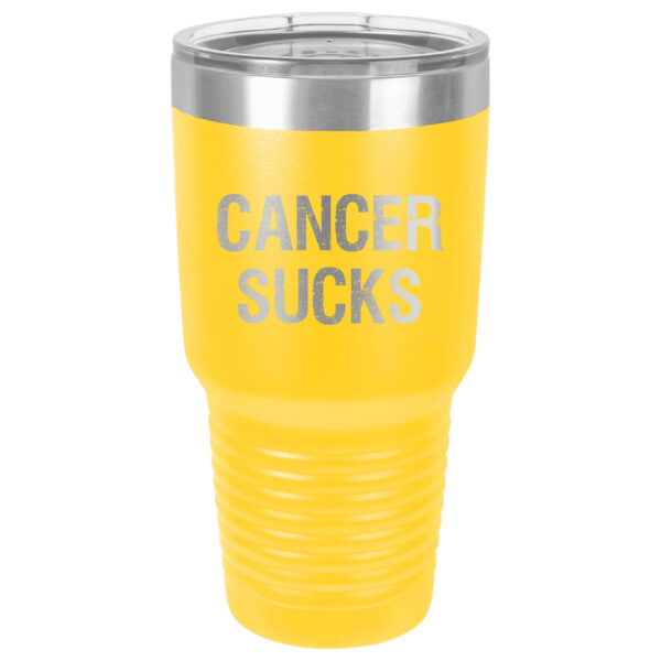 Cancer Sucks 30oz. tumbler made of Stainless Steel and laser engraved with the Cancer Sucks slogan.