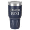 Cancer Sucks 30oz. tumbler made of Stainless Steel and laser engraved with the Cancer Sucks slogan.