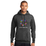Our Circle of Hope design showcases all the cancer awareness ribbons along with our popular phrase No One Fights Alone®! Colorful and supportive, this Hooded Sweatshirt is ideal for staying warm and cozy on cool days.