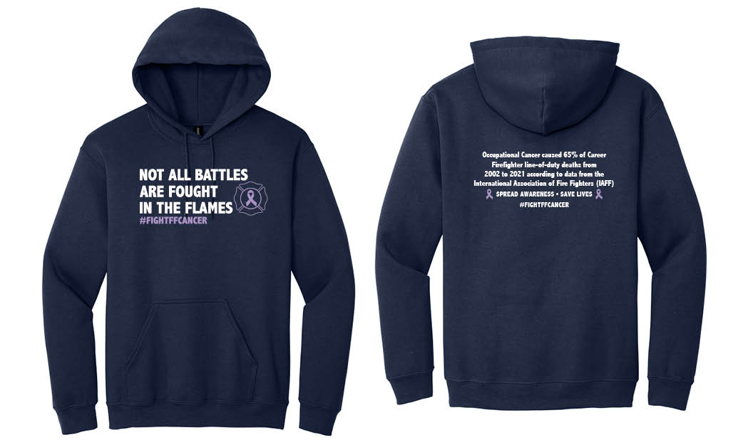 This sweatshirt spreads awareness for the countless number of firefighters who are affected by job related cancer. Cancer caused 66 percent of the career firefighter line-of-duty deaths from 2002 to 2019, according to data from the International Association of Fire Fighters (IAFF).