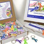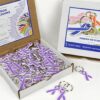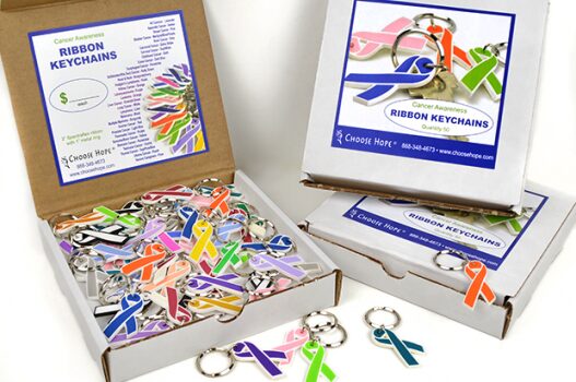 Great for fundraising, this box of 50 of our popular Flexible Ribbon Keychains is sure to sell-out at your next event! Looking for an inexpensive way to show support and bring awareness? We’ve got you covered with our ever popular Ribbon Keychain! Ideal for holding your keys, using as a zipper pull or attaching to a purse, tote or carrying case, these Ribbon Keychains will make a statement! Great for fundraisers, benefits and giveaways!