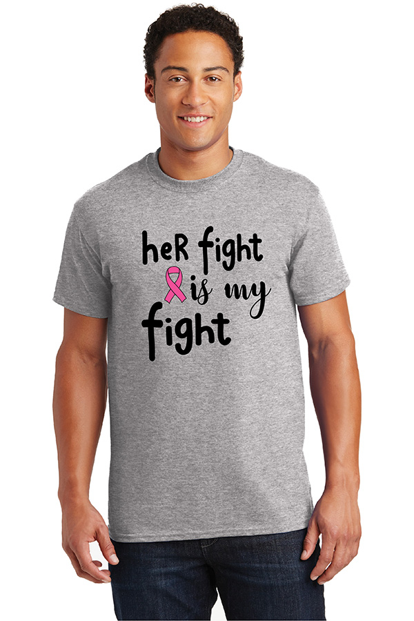 Need a way to tell your loved one that you are fighting right alongside her? This Her Fight is My Fight t-shirt tells it all.