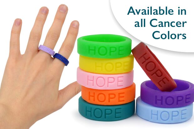 All Cancers – Lavender, Anal Cancer – Purple/Green, Appendix Cancer – Amber, Bladder Cancer – Marigold/Blue/Purple, Brain Cancer – Grey, Breast Cancer – Pink, Cervical Cancer – Teal/White, Childhood Cancer – Gold, Colon Cancer – Dark Blue, Esophageal Cancer – Periwinkle, Gallbladder/Bile Duct Cancer – Kelly, Head & Neck Cancers – Burgundy/Ivory, Hodgkin’s Lymphoma – Violet, Honor Caregivers – Plum, Kidney Cancer – Orange, Leiomyosarcoma – Purple, Leukemia – Orange, Liver Cancer – Emerald Green, Lung Cancer – White, Lymphoma – Lime, Melanoma – Black, Metastatic Breast Cancer – Green/Teal/Pink, Multiple Myeloma – Burgundy, Neuroendocrine & Rare Cancers – Zebra Stripe, Ovarian Cancer – Teal, Pancreatic Cancer – Purple, Prostate Cancer – Light Blue, Sarcoma/Bone Cancer – Yellow, Stomach Cancer – Periwinkle, Testicular Cancer – Orchid, Thyroid Cancer – Teal/Pink/Blue, Uterine Cancer – Peach