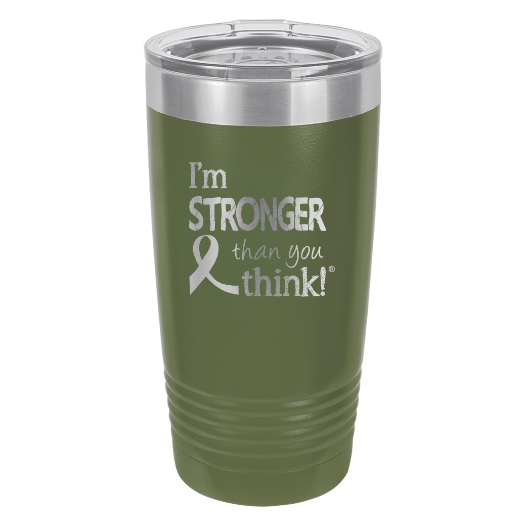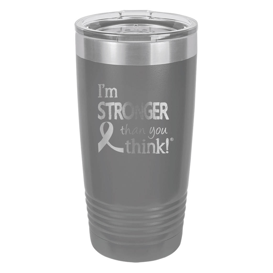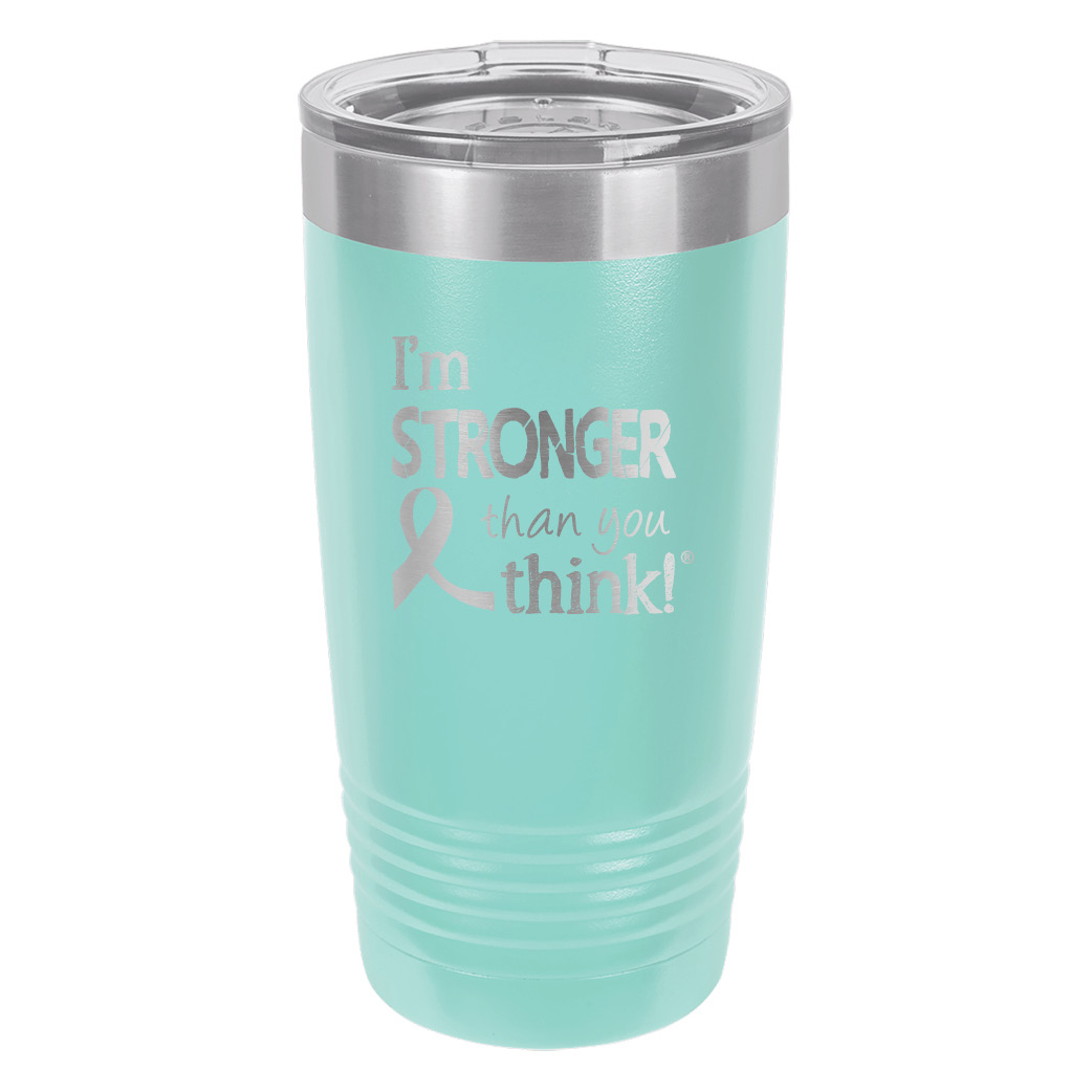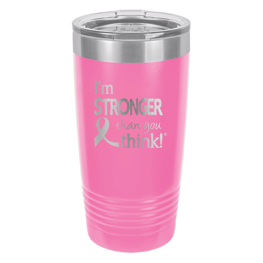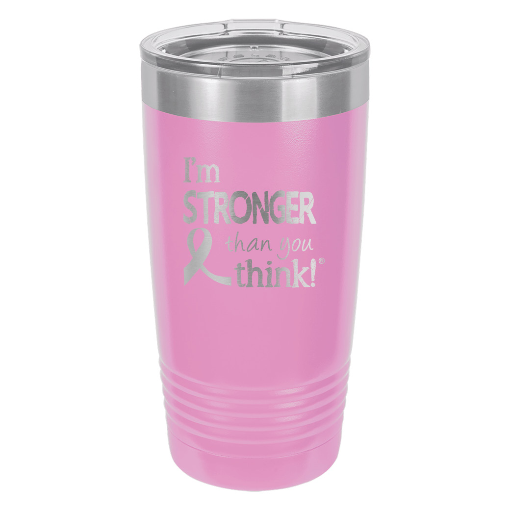 Stay hydrated and show your support with the I’m Stronger Thank you Think® 20oz. Stainless Steel Tumbler, a durable, stylish drinkware essential designed for cancer awareness advocates, survivors, patients, and caregivers.