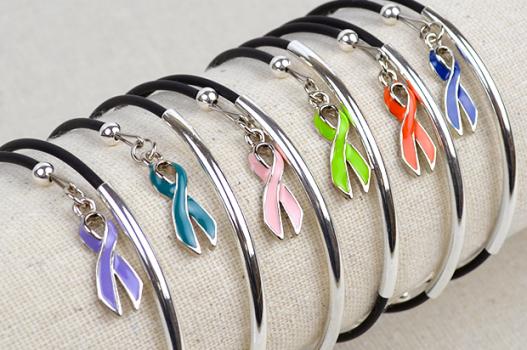 All Cancers – Lavender, All Cancers – Silver, Anal Cancer – Purple/Green, Appendix Cancer – Amber, Bladder Cancer – Marigold/Blue/Purple, Brain Cancer – Grey, Breast Cancer – Pink, Cervical Cancer – Teal/White, Childhood Cancer – Gold, Colon Cancer – Dark Blue, Esophageal Cancer – Periwinkle, Gallbladder/Bile Duct Cancer – Kelly, Head & Neck Cancers – Burgundy/Ivory, Hodgkin’s Lymphoma – Violet, Honor Caregivers – Plum, Kidney Cancer – Orange, Leiomyosarcoma – Purple, Leukemia – Orange, Liver Cancer – Emerald Green, Lung Cancer – White, Lymphoma – Lime, Melanoma – Black, Metastatic Breast Cancer – Green/Teal/Pink, Multiple Myeloma – Burgundy, Neuroendocrine & Rare Cancers – Zebra Stripe, Ovarian Cancer – Teal, Pancreatic Cancer – Purple, Prostate Cancer – Light Blue, Sarcoma/Bone Cancer – Yellow, Stomach Cancer – Periwinkle, Testicular Cancer – Orchid, Thyroid Cancer – Teal/Pink/Blue, Uterine Cancer – Peach
