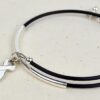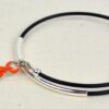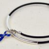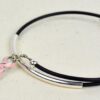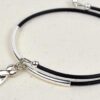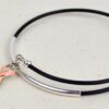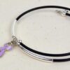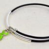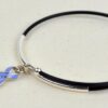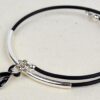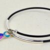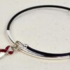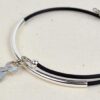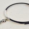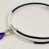 Memory wire wrapped in black tubing allows this bracelet to keep its shape will being simple to get on and off