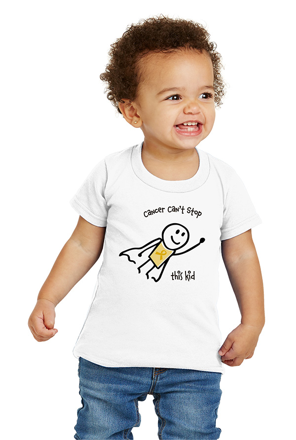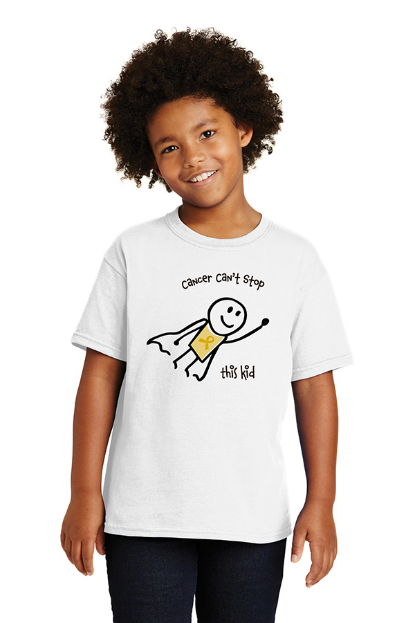 Your kid is a cancer superhero, show them with this great design on a white youth or toddler T-shirt!