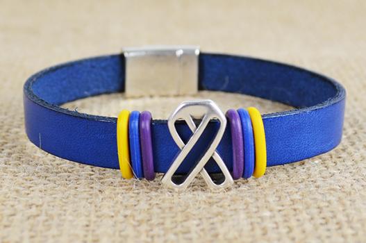 Leather Ribbon Awareness Bracelet Bladder Cancer – Marigold/Blue/Purple 14317-MBP $28.00