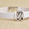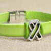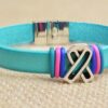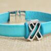 Now available in ALL ribbon colors!!! Looking for a great way to show support and awareness for you or a loved one? These handmade Leather Ribbon Awareness Bracelets are a great alternative to wristbands and crystal/beaded bracelets. Perfect for men or women, these bracelets are made of genuine leather and measure 3/8″ in width. Each bracelet has an open ribbon held in place by two matching colored bandelets. Also available in a Men’s size & style!