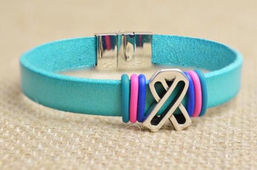 Now available in ALL ribbon colors!!! Looking for a great way to show support and awareness for you or a loved one? These handmade Leather Ribbon Awareness Bracelets are a great alternative to wristbands and crystal/beaded bracelets. Perfect for men or women, these bracelets are made of genuine leather and measure 3/8″ in width. Each bracelet has an open ribbon held in place by two matching colored bandelets. Also available in a Men’s size & style!