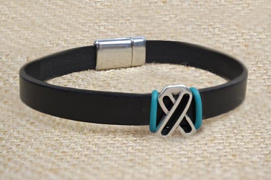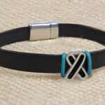 This bracelet was designed specifically for men, in style and size. These handmade Men’s Leather Ribbon Awareness Bracelets are a great alternative to wristbands. Also available in a Ladies style & size!