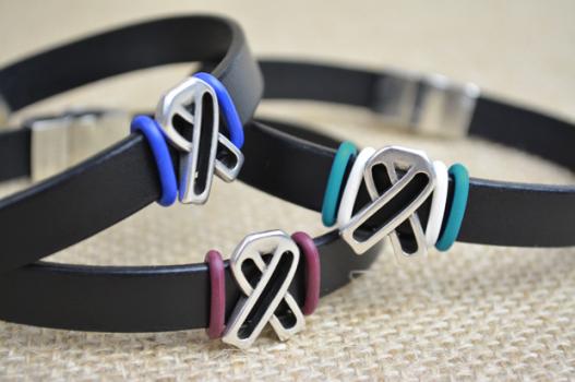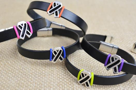 This bracelet was designed specifically for men, in style and size. These handmade Men’s Leather Ribbon Awareness Bracelets are a great alternative to wristbands.  Also available in a Ladies style & size!