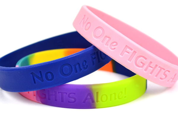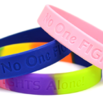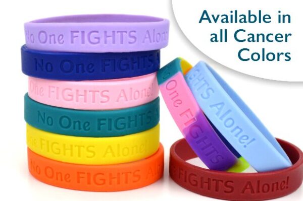 This silicone wristband is a top-seller for a reason. Are you a patient? A survivor? A supporter? Wear the No One Fights Alone® wristband to show your support that a cancer journey is never walked alone. This bracelet is a positive outlook on a tough disease. Keep it as a constant reminder that you’ve got “us” wrapped around your wrist! Available in most cancer awareness colors and in a variety of sizes! You will find an option that is right for your needs and at an affordable price!
