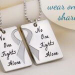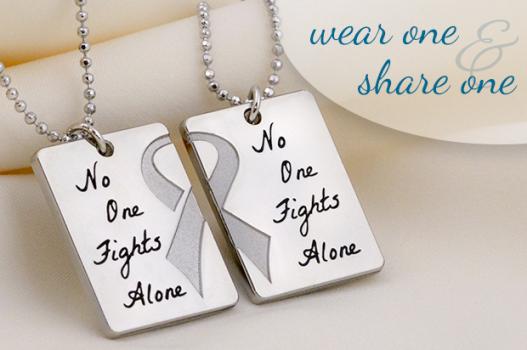 Exclusive to Choose Hope, our No One Fights Alone® Friendship Necklace will truly show your loved one that they are not alone on their cancer journey. These necklaces offer a split ribbon and are meant to be shared with that special person who will know they are loved and supported, even when you are apart. This set is a contemporary take on the ‘Best Friend’ necklace and is ideal for someone newly diagnosed or just beginning treatment. Each of you wears one half of the whole ribbon, and each necklace sends the powerful message that No One Fights Alone®!