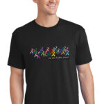 No One Fights Alone® Multicolored Ribbon T-shirt | Show support with the contemporary design which showcases all cancer awareness ribbons!