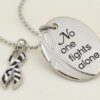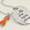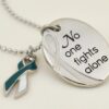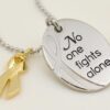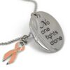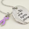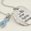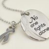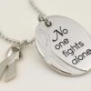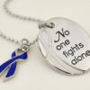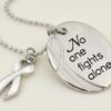 The cancer journey is one of courage, strength and determination. Our exclusively designed No One Fights Alone® Necklace will serve as a constant reminder that we are all surrounded by the love of family and friends. Each necklace has a subtly etched ribbon and includes a Ribbon Awareness Charm in the cancer color of your choice. This necklace is the perfect gift for yourself or a loved one and provides a constant reminder that no one is in this fight alone!