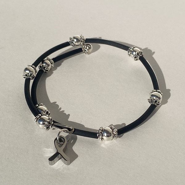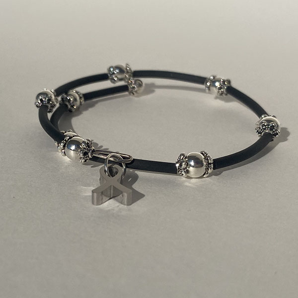 Remember you are not alone in this fight! Our No One Fights Alone® Wrap Bracelet features a silver ribbon charm representing all cancers. This subtle bracelet can be worn dressed up or down and shows your support in the fight against cancer! One size fits most.