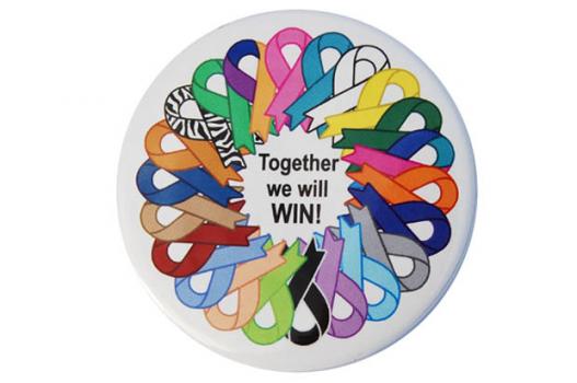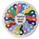 Looking for something affordable to use for giveaways or events? Want to bring awareness to all cancers? Our exclusively designed Together We Will Win® button features an array of cancer awareness ribbon collors joined together in unity. A great reminder than all cancers matter and that Together We Will Win®!