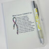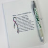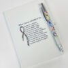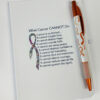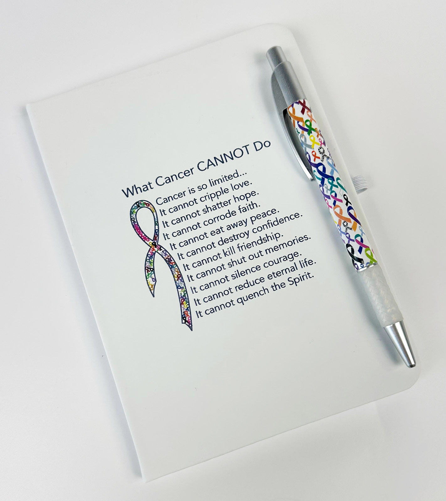 Our new What Cancer Cannot Do® journal and pen features the popular What Cancer Cannot Do poem along with a multicolored ribbon reflecting all cancer types. Combine this journal with a pen featuring your selected ribbon color for a great pairing.